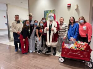 Our in-person visits with Santa began again during the 2022 Holiday Season. Troopers Memorial Fund Trustees along with help from Troop L members delivered gift cards to children at SUNY Stony Brook Children’s Hospital and Good Samaritan Hospital in W. Islip, NY. The great staffs at each facility along with the children and their families welcomed us back with open arms!